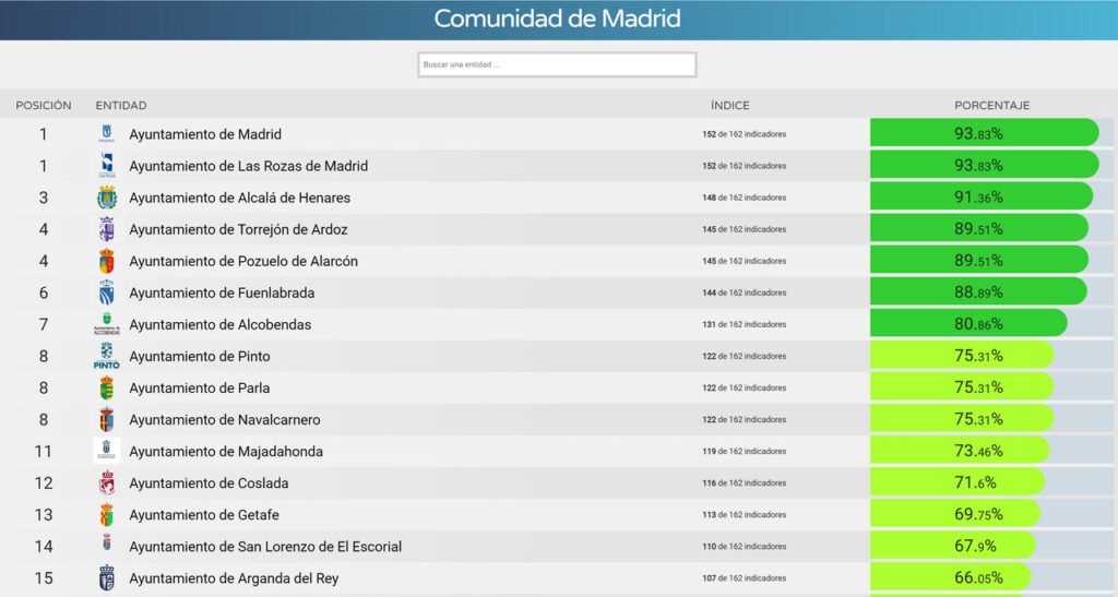 En segundo lugar, los municipios madrileños han demostrado estar muy por encima de la media nacional, situándose diez puntos por encima de otras comunidades autónomas. Por último, el hecho de que solo tres ayuntamientos, entre los que se encuentra Alcalá, superen el 90% de cumplimiento, demuestra el gran salto cualitativo que algunos municipios han dado en comparación con otros que aún no han alcanzado un nivel adecuado de transparencia.